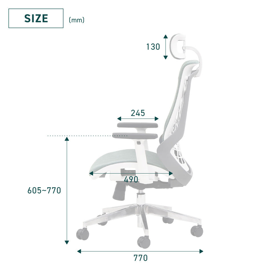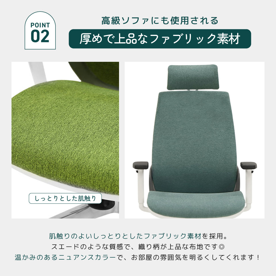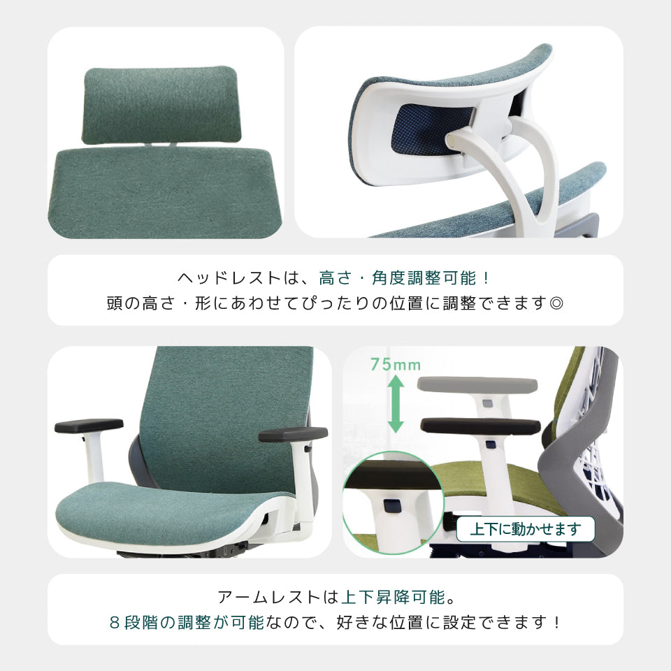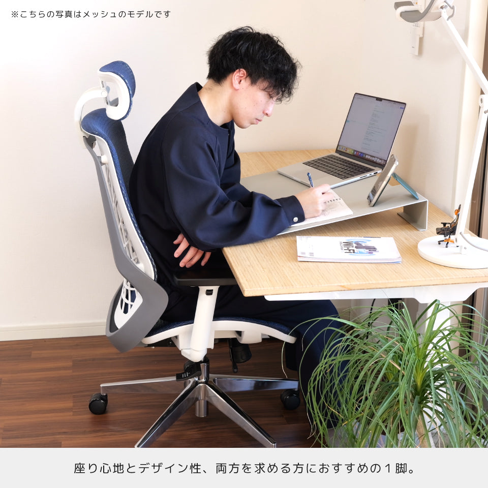 こちらはアームレスト・ヘッドレスト付きのモデルです。別商品にオプションなし、アームレスト付きがございます