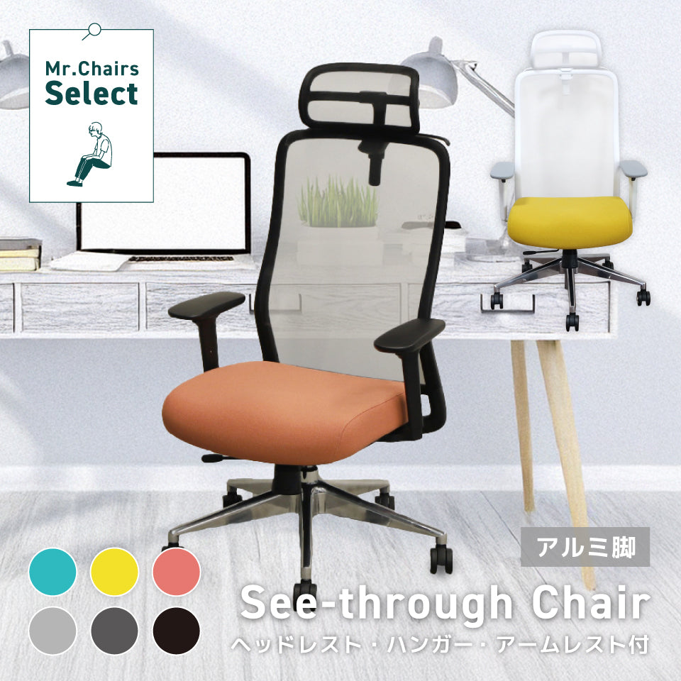 シースルーチェア (肘付き・ヘッドレスト ハンガー付き)アルミベース