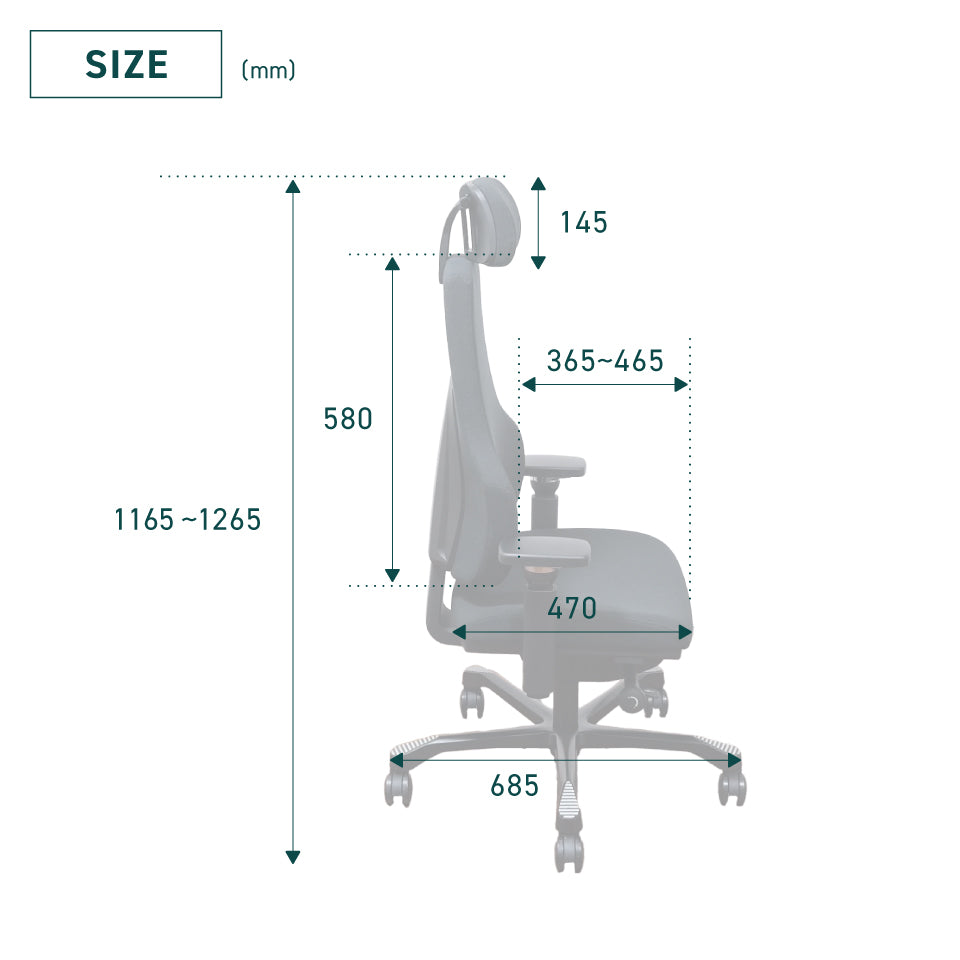 座面幅:470 ×奥行き365〜465mm(スライド機能あり)