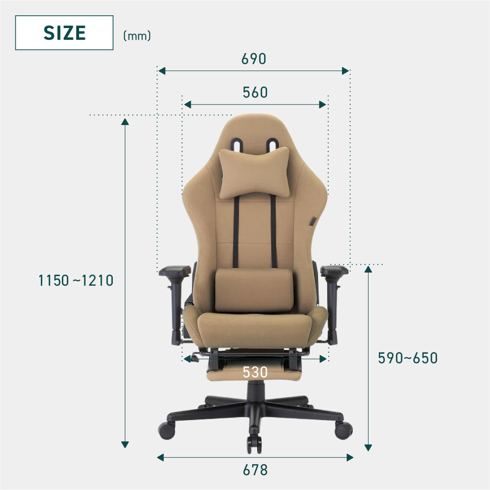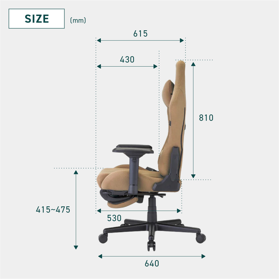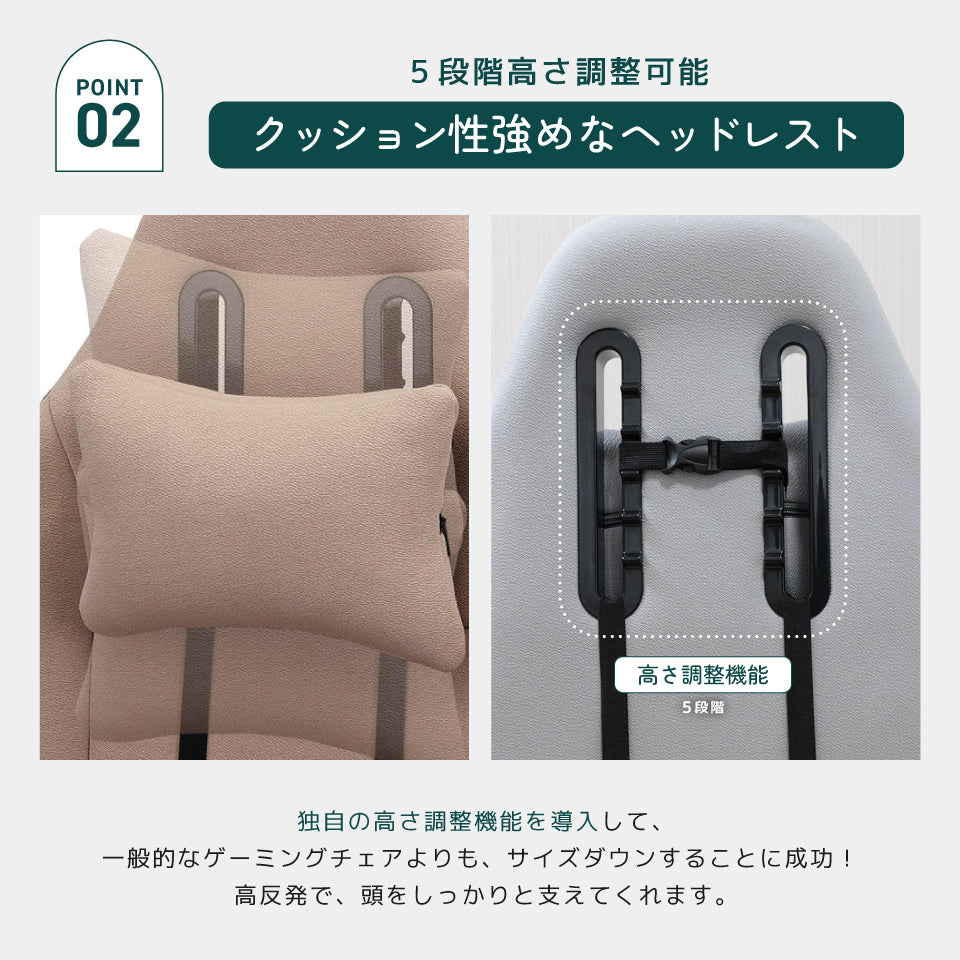 ヘッドレストは独自の高さ調整機能を導入して、一般的なゲーミングチェアよりも、サイズダウンすることに成功。