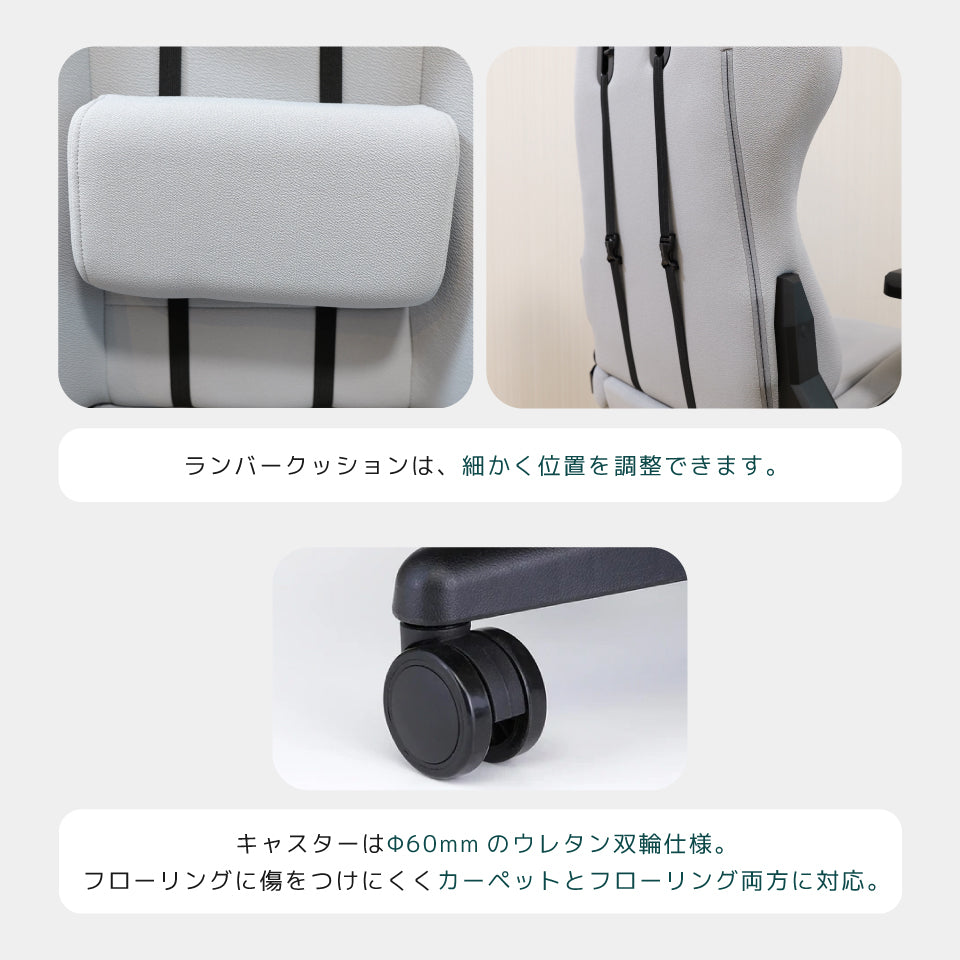 ウレタン製なので、フローリングに傷をつけにくくカーペットとフローリング両方に対応。在宅リモートワーカーにおすすめな仕様です。