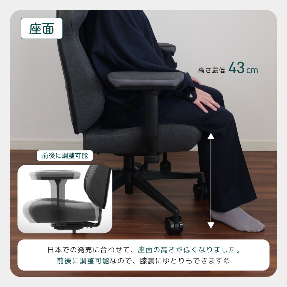 座面のスライド機能を調整すれば
