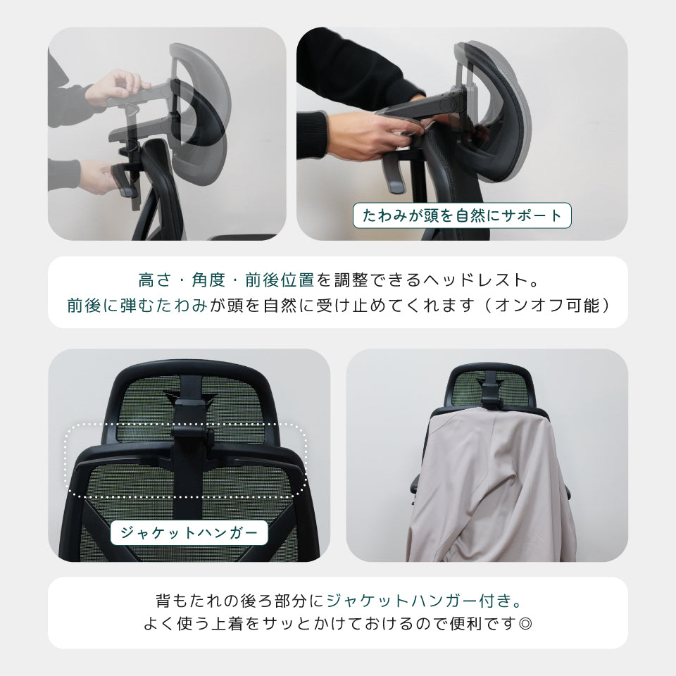 座面・背もたれ・ヘッドレスト:通気性メッシュ/Loftファブリック
