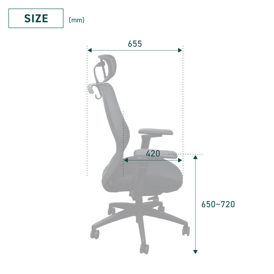 奥行は「深め」ですが、6cmのスライド機能と4°の前傾機能が