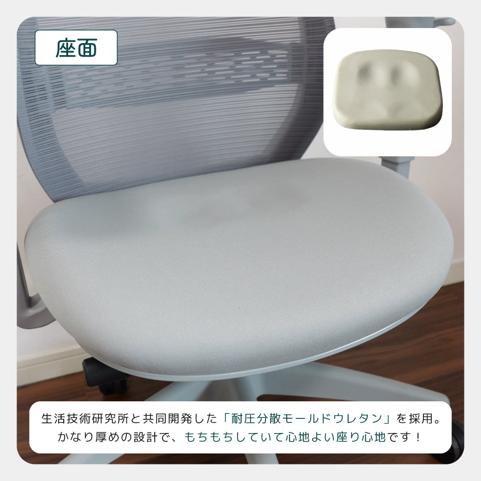脚部:PA強化樹脂成型品、ガスシリンダー、φ65mmウレタン双輪キャスター